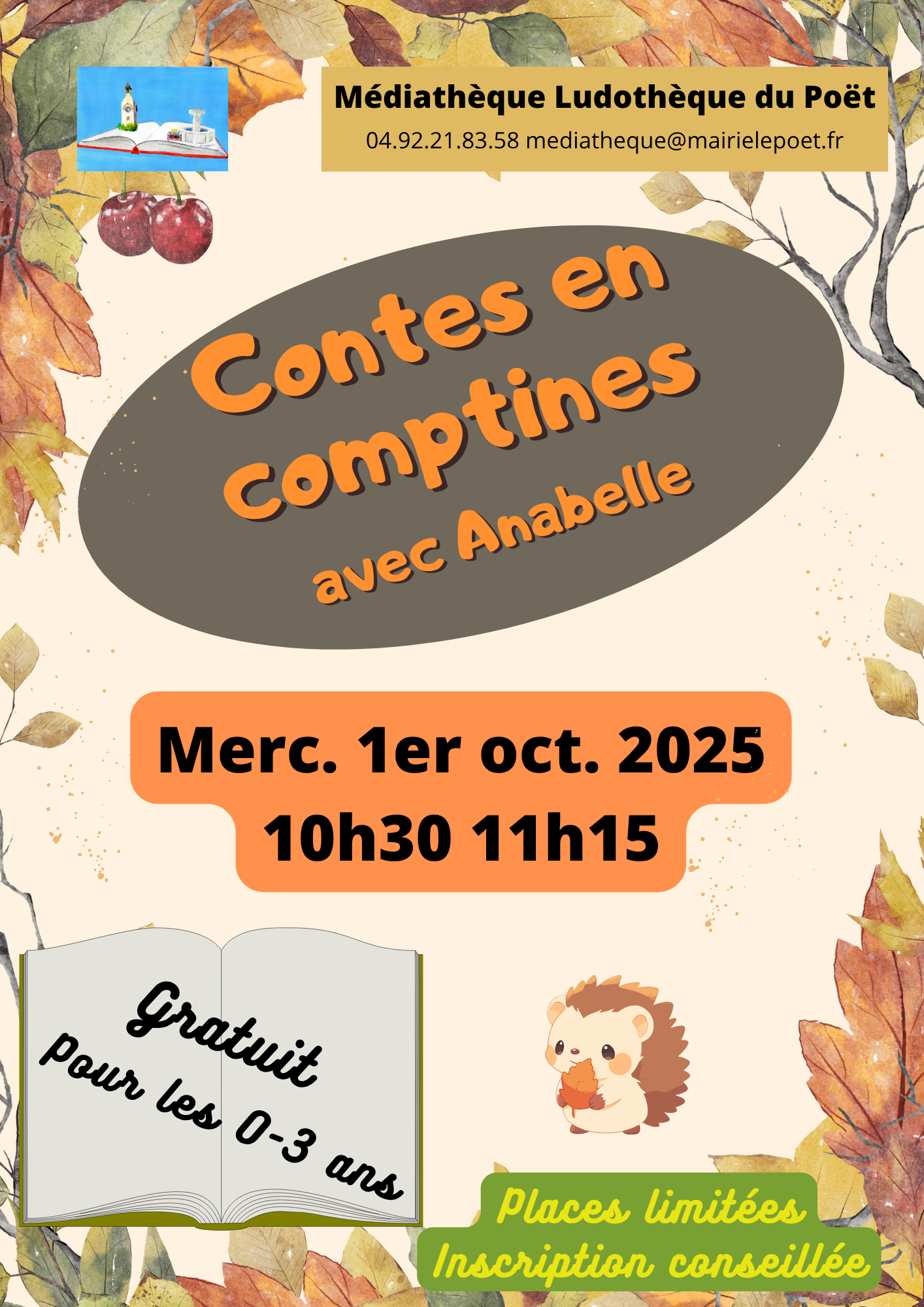 Pour le plaisir des enfants de 0 à 3 ans, Anabelle vous attend pour ses "Contes en comptines" !