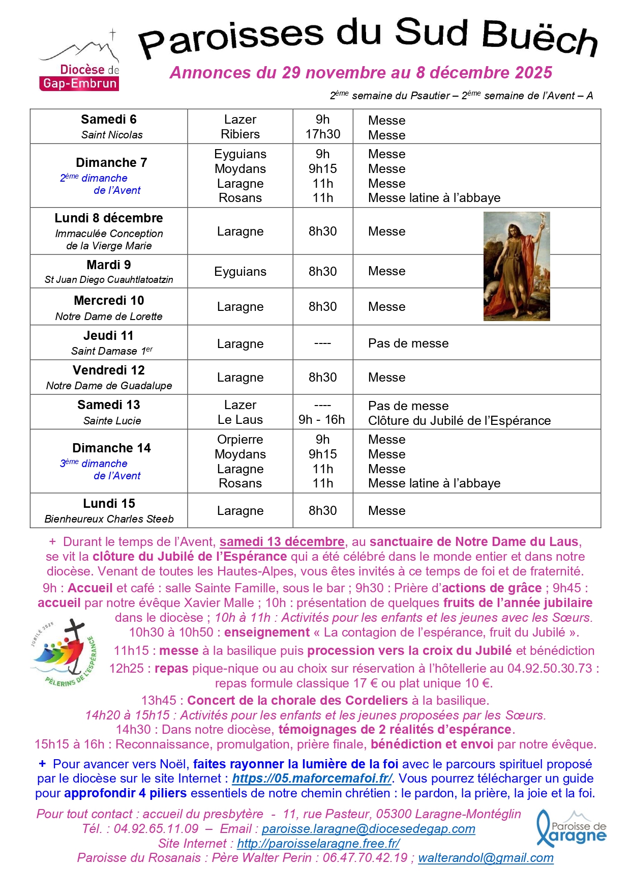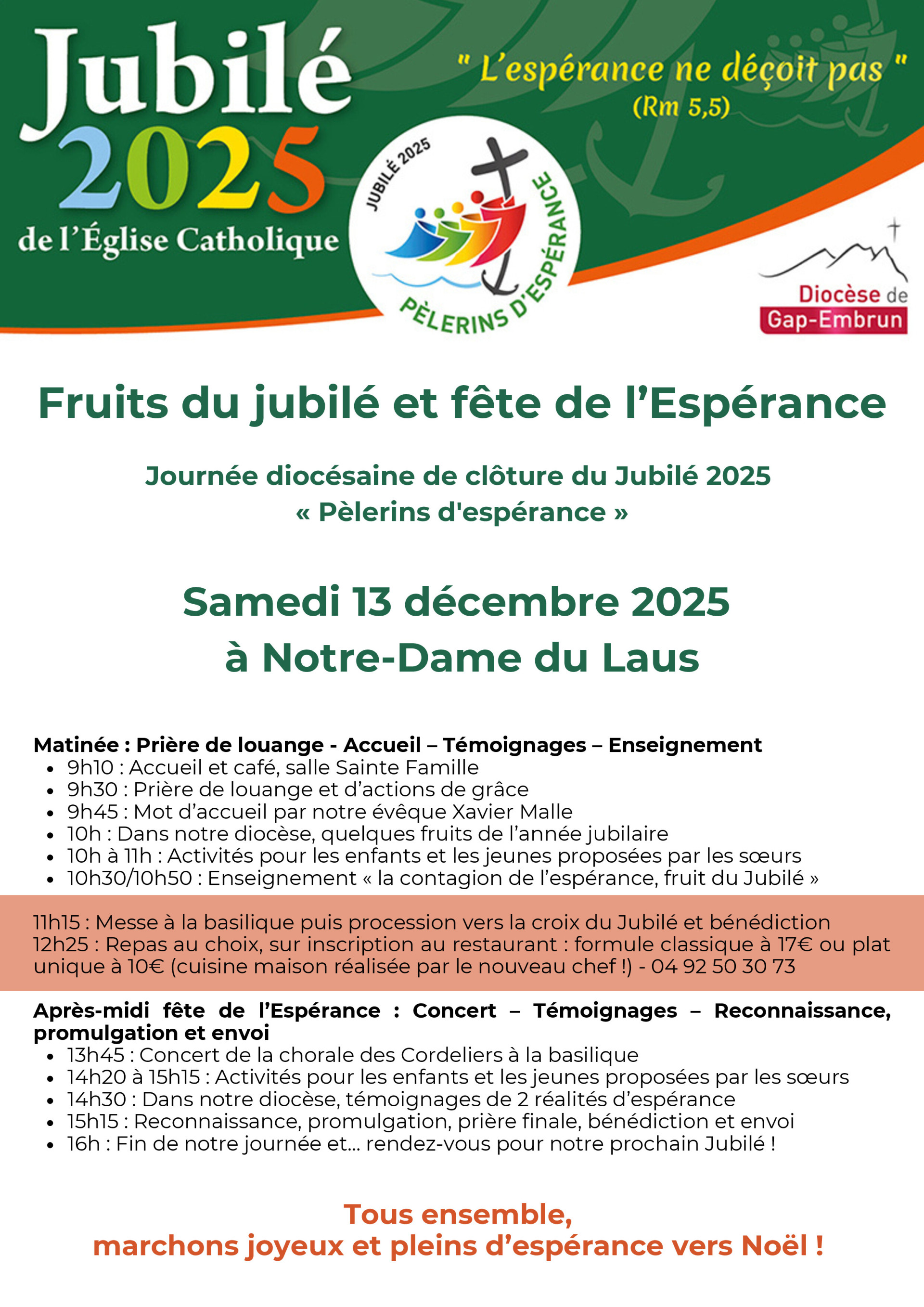 mettant l'accent sur la journée de clôture du Jubilé de l'Espérance, en diocèse, le samedi 13 décembre prochain.