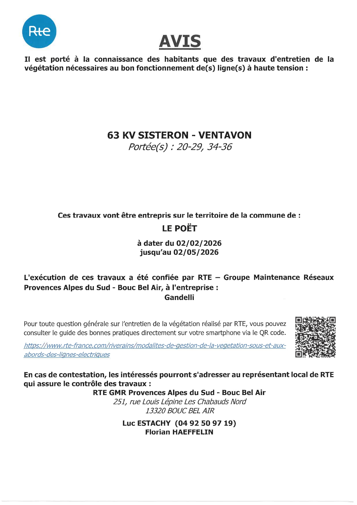Travaux d'élégage et abattage nécessaires au bon fonctionnement des lignes à Haute Tension du 02/02/26 au 02/05/26