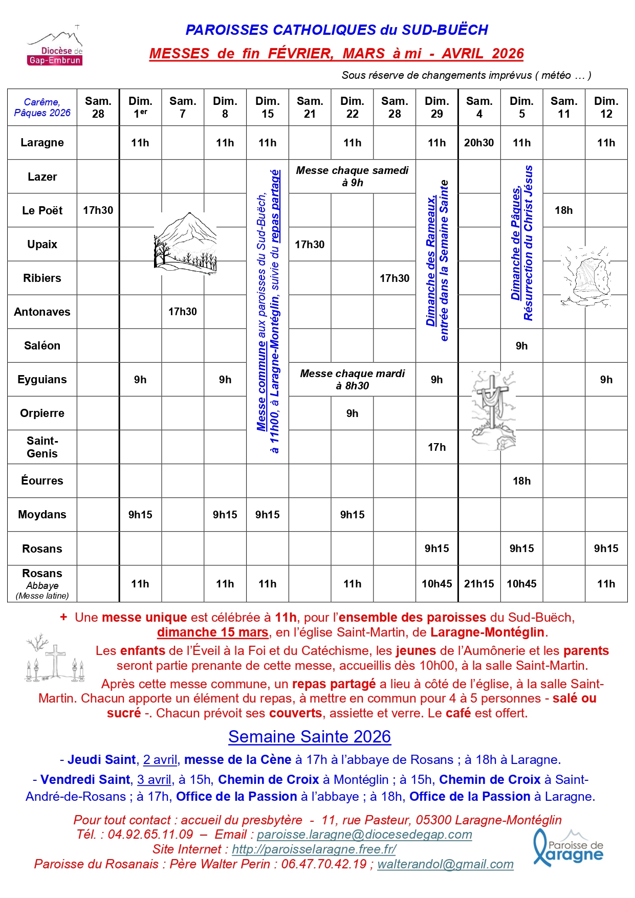 Horaires Février Avril 2026